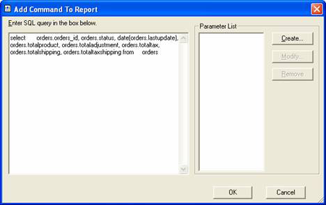 Также необходимо выполнить окончательный SQL-оператор из среды отчётов и получить содержимое отчёта из базы данных. Это можно сделать при помощи одного из новых компонентов данных, CrystalReportDataBean.