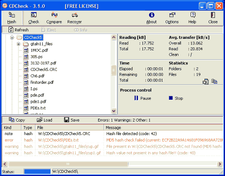Вышла новая версия утилиты CDCheck, предназначенной для проверки и диагностики состояния CD-дисков, а также для восстановления информации с испорченных CD-носителей. CDCheck проверяет диск и сообщает, какие из файлов повреждены, умеет производить побитовое сравнение файлов и директорий на CD с их копиями на жестком диске, создавать и проверять MD5, CRC-32, SHA-файлы, может пытаться производить восстановление проблемных файлов. Также поддерживается работа с DVD-дисками. Имеется русский интерфейс.