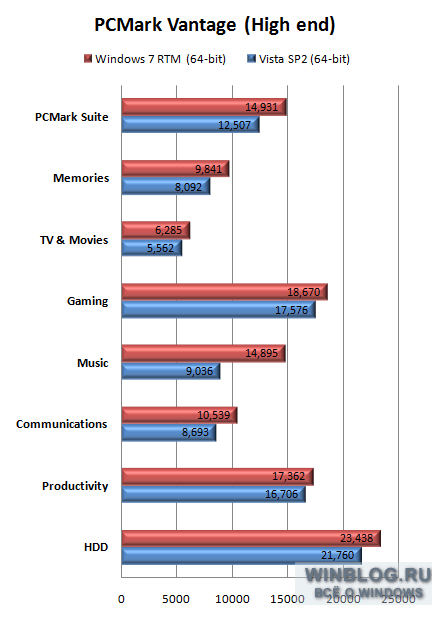 Результаты тестирования: Windows 7 RTM против Vista и XPИсточник: Winblog