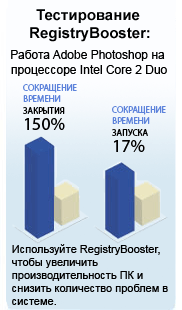 "Эта простая в использовании программа позволяет удалять нерабочие записи в реестре, замедляющие работу компьютера". "Я очень доволен этой программой! Она превратила мой ужасно медленный компьютер в производительного монстра". Бесплатная проверка Vista на наличие ошибокИспользуйте ссылку для загрузки утилиты внизу страницы запуска БЕСПЛАТНОЙ проверки.Быстро, легко и удобно. Эта проверка реестра выявит любые ошибки или конфликты, влияющие на стабильность и производительность вашего ПК. Исправьте ошибки на вашем ПКПри помощи усовершенствованной технологии обнаружения ошибок, применяемой в RegistryBooster, найденные при проверке ошибочные данные безопасно удаляются или исправляются. Увеличьте скорость работы вашего ПКТехнология дефрагментации, применяемая в RegistryBooster, оптимизирует реестр и увеличивает скорость работы ПК. Увеличьте производительность вашего ПКRegistryBooster удалит нежелательные записи в реестре, и вы сразу же ощутите увеличение производительности ПК. Предотвратите сбои и зависанияRegistryBooster исправляет поврежденные записи в реестре, гарантируя тем самым, что вы более не будете сталкиваться со случайными сбоями и зависаниями ПК. Очистите системуRegistryBooster удаляет из реестра все потерянные и ненужные записи, сохраняя его в рабочем состоянии. Всего две минуты смогут предотвратить месяцы неудач и сбоев! Файлы для загрузки