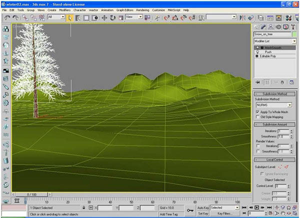 Выберите свободный слот в Material Editor и переименуйте его к Mountains - данный материал мы применим к гористым участкам поверхности ландшафта.Также нужно заметить, что данный материал должен быть заменен со стандартного на VRayMtl. ![]() Для слотов Diffuse и Bump мы используем растровые изображения - подходящие текстуры можно найти в интернете, я рекомендую вам использовать текстуры 3Dtotal или текстуры проекта Dosch Design. ![]() В этом уроке автор использует текстуру ландшафта из сборника Dosch Design. ![]() Далее снова выберите свободный слот в редакторе материалов и замените его тип на Top/Bottom.Теперь скопируйте GroundSnow к Top Material и Mountains к Bottom Material. Установите Coordinates к Local, Blend к 10 и Postion к 90. ![]() К стволу дерева примените материал, содержащий в слоте Diffuse карту Mix со смешиванием двух растровых изображений посредством Grayscale маски. Полученную карту нужно скопировать к Bump компоненту с величиной Amount в 15 и, при желании, использовать Grayscale текстуры вместо примененных в слоте Diffuse. Часть 3: Освещение и визуализация В этой части урока мы будем применять освещение к нашему зимнему пейзажу.