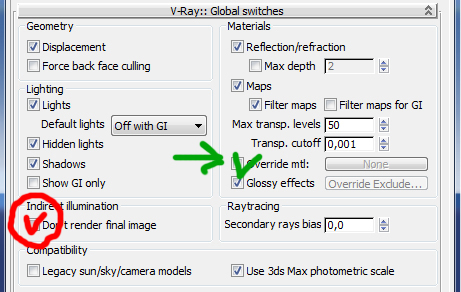 ![]() Но с одним но. Сатюрэйшн нужно сильно увеличить. Для того, что бы цвета глобалки стали более сочными, насыщенными. Оклюжн появившийся в последних версиях, лучше не включать. Края станут слишком четкими. Настроим освещение. Настройки стандартные. Только я поменял хермисферик сабдивз до 90, так что бы картинка была более гладкая. Считается конечно дольше… Поэтому я сохранил глобалку в низком разрешении (640 по длинной стороне). Лайт кэш просто стандартный. У вас может возникнуть вопрос, как сохранить глобалку. Поставьте галочки напротив don"t delite и auto save, и укажите путь для сохранения карт (напротив auto save). Откройте vray global switches. ![]() Поставьте галочку на Don"t render final image. Это позволит просчитать только глобалку без рендера. Потом естественно надо будет отжать эту галку. Зеленая галочке напротив Override mtl относится к контурам и понадобится позже. Просчитав картинку, нажмите From file вместо Single frame в ирмапе и лайткеше. Отожмите донт рендер файнал имаге. Все, глобалка просчитываться не будет, а будет подгружаться из файла. Не забудьте включить нормальный колормаппинг. ![]() Что бы добиться менее контрастных теней и тональности свойственной акварели, задавите Burn value до нуля. Станет довольно темно. Поднимите Multiplier и Gamma по вкусу. У меня это было соответственно 4 и 2. Сетап готов! Нда. Теперь настройка материалов. ![]() На скриншоте показан слэйт материал эдитор. Никто из тридешников которых я знаю, не пользуется слэйтом. Он несколько непривычный… Но если честно, он очень удобен. В основном проблема возникает у людей, когда они пытаются назначить материал на объект, и тщетно таскают ярлычки материала по полю слэйт эдиора туда сюда, потом расстраиваются и закрывают его L((. А вообще там справа есть кружок. Надо хватать за него и тащить на объект. ![]()