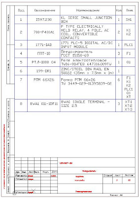Сначала сформируем спецификацию шкафа средствами AutoCAD Electrical и разместим ее на отдельном чертеже.
