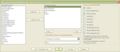В блоке "Строки для описания" активизируем следующие поля (базы данных):