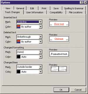 Выбрав источник корпоративных шаблонов и зафиксировав его, можно смело пользоваться известной командой File®New. Можно обнаружить, что во вкладке General появились новые шаблоны документов, готовые к использованию. Если же папка с корпоративными шаблонами содержала вложенные папки, то можно увидеть и новые одноименные вкладки, где эти шаблоны хранятся. Авторы, наделенные правами редактирования корпоративных шаблонов, могут заметно сократить время подготовки документов другими авторами на основе этих шаблонов, если воспользуются мощным средством Microsoft Word 2000 - пользовательскими стилями. Создав при очередном редактировании шаблона с помощью команды Format®Style®New новый стиль абзаца или текста и сохранив его, можно многократно пользоваться им в окне Style на панели форматирования при разработке нового документа на основе этого шаблона, как это происходит со стандартными стилями. Рецензирование документовЧтобы окончательно согласовать документ, его необходимо обсудить с рецензентами или с коллегами. Помимо упомянутых выше интерактивных Web-дискуссий, для которых необходим Web-сервер с развернутыми Office Server Extensions, в Word 2000 имеется возможность включить в документе с помощью команды Tools®Track Changes®Highlight Changes режим отслеживания редакторских правок с последующей возможностью окончательно применить их или отказаться от некоторых из них. Этот режим будет еще эффективнее, если перед отправкой документа рецензенту воспользоваться командой Tools®Protect Document в режиме Tracked Changes, задать пароль и сохранить документ в таком виде. Теперь только автор, знающий пароль, сможет применить или отменить все редакторские правки рецензентов. А как узнать, какой рецензент сделал те или иные правки? В стандартном режиме каждый новый рецензент автоматически делает правки своим цветом, а настроить цвета можно заранее, с помощью команды Tool®Options®Track Changes.
