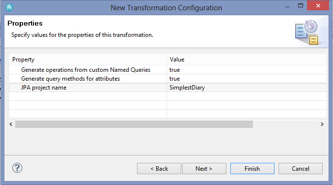 Рисунок 14. Вкладка Properties файла конфигурации преобразования JPA в EJB 3.0