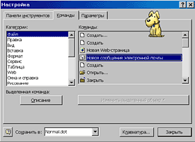 Рис. 3 Более широкие возможности настройки реализуются с помощью диалогового окна Настройка, которое вызывается командой Сервис/Настройка (рис. 4). В этом режиме пользователь может размещать на панелях инструментов любые команды (не только встроенные в панель изначально) и в любом месте, а также создавать собственные "пользовательские" панели, разместив на них произвольный набор кнопок. Все эти операции выполняются простым перетаскиванием мышью изображений кнопок. Таким образом, можно формировать собственный индивидуальный набор панелей инструментов, рассортировав на нем команды в нужном конкретному пользователю виде.