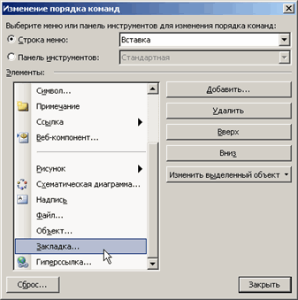 Откройте любой пункт меню: Файл (File), Вид (View), Вставка (Insert) и вы увидите, что они содержат в себе различные команды. Как правило, сначала идут такие команды, которые, по мнению разработчиков Word, чаще всего востребованы пользователями, а потом уже остальные. Но мне, например, не нравится, что команда Закладка (Bookmark) находится в самом низу меню Вставка (Insert). А вам может не понравиться расположение каких-нибудь иных команд в меню. Однако этот, заведенный Microsoft порядок расположения команд в меню, можно изменить на свой вкус.