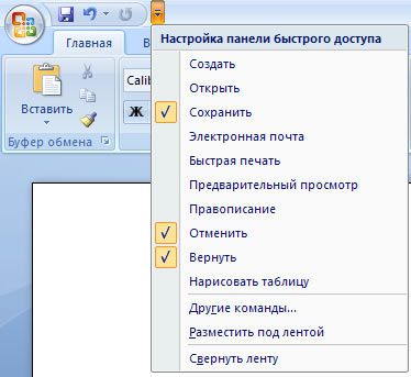 Меню OfficeМеню Office - это все, что осталось от главного меню. Некоторые команды перекочевали сюда из меню Файл, знакомого пользователям предыдущих версий Word 2003, некоторые являются абсолютно новыми.