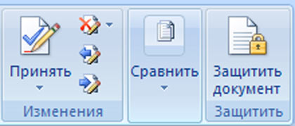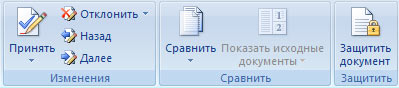 Лента занимает много места не только в высоту, но и в ширину. Ее размеры рассчитаны на разрешение 1280 X 1024, но никак не меньше. При работе с разрешением 1024 x 768 некоторые команды не видны, и для доступа к ним приходится лишний раз кликать мышкой. Так отображаются некоторые команды вкладки "Рецензирование" в разрешении 1024x768.