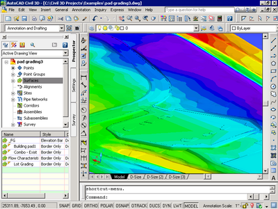 Новое в версииИспользование платформы AutoCAD AutoCAD Civil 3D 2008 разработан на платформе AutoCAD 2008. Вы можете работать в привычной графической среде с использованием уже знакомых средств построения чертежей, аккуратно и точно выводить на печать проектную документацию и наборы планов. Средства автоматического построения планов и профилей позволяют быстро и точно формировать наборы планов, создавать пояснения на основе заданного стиля. При изменении проекта документация обновляется автоматически. ![]() AutoCAD Civil 3D располагает полным набором функций для работы с геодезическими данными. Пользователю предоставлена универсальная среда для решения всех задач - от импорта полевых журналов топосъемки, регулировки методом наименьших квадратов и редактирования результатов измерений до управления группами точек, создания поверхностей и схем земельных участков.