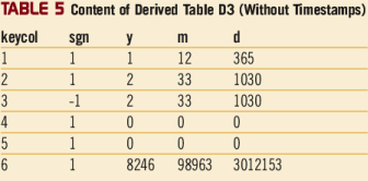 SQL Server возвращает ложное значение разности лет 1 (вместо 0) так как функция не проверяет единицы измерения времени меньшие года, но легко вычитает 2005 из 2006. Посмотрим, как получить правильную разность дат, принимая во внимание все единицы. Другими словами, заданы две временных метки - from_ts и to_ts. Посмотрим, как получить разницу между ними в единицах лет, месяцев, дней, часов, минут, секунд и миллисекунд. Сначала проверьте свое решениеНачните решение задачи на определение разницы между датами с выполнения программного кода в Листинге 1. Код наполняет таблицу TimeStamps. Заполните ее примерными данными. В Таблице 1 показано содержание таблицы Time-Stamps. Каждая строка содержит целочисленный ключ (keycol) и пару временных меток (from_ts и to_ts ). Задача состоит в том, чтобы вычислить разницу между временными парами, учитывая все возможные элементы времени, и получить результат, показанный в Таблице 2. Перед тем как посмотреть на мое решение, попытайтесь решить задачу сами. Решение должно обрабатывать варианты, в которых метка from_ts содержит более позднюю дату, чем метка to_ts. В этом случае программный код должен создать негативный результат. Результирующий столбец sgn должен идентифицировать позитивный (1) или негативный (-1) результат. Для экономии места в таблицу среди примерных выходных данных не вписаны значения меток from_ts и to_ts. Эти значения можно вставить обратно в таблицу TimeStamps, которая базируется на keycol. Пошаговые вычисленияПерейдем к моему решению, которое показано в Листинге 2. Сначала рассмотрим внутренний запрос в метке F Листинга 2. Он создает вторичную таблицу D1, показанную в Таблице 3. Цель запроса - поместить большее значение пары временных меток (from_ts, to_ts) в результирующем столбце to_ts и разместить меньшее значение в from_ts. Для этого используются простые выражения CASE. Данная операция предусматривает в дальнейшем упрощение расчетов, гарантируя, что дата в метке from_ts - более ранняя или такая же, как в метке to_ts. Результирующий столбец sgn будет содержать значение 1, если from_ts меньше или равно to_ts и -1, если from_ts больше, чем to_ts. Метка Е показывает запрос, который принимает D1, в качестве своих входных данных, а затем создает вторичную таблицу D2, которая показана в Таблице 4. Запрос использует функцию DATEDIFF() для вычисления разностей элементов дат (т.е год, месяц, день). Следует помнить о том, что разность элементов, которую вычисляет DATEDIFF(), может иметь отклонение от правильного значения разности на 1. Это происходит из-за того, что функция не учитывает элементы, стоящие во временной иерархии ниже заданного элемента. Следующий шаг будет контролировать это отклонение. Запрос в метке D принимает D2 в качестве его входных данных и создает вторичную таблицу D3, которая показана в Таблице 5. Этот запрос использует выражение CASE для каждого элемента даты. Он прибавляет к значению метки from_ts соответственную разность элементов, полученную из предыдущего запроса. Если результат больше, чем в метке to_ts, значит разность, вычисленная функцией DATEDIFF(), была больше правильного значения на 1, тогда программный код вычитает из разности 1. Эта логическая схема, устраняющая неточность в вычислении DATEDIFF(), является ключевым элементом решения. Почему не используют подобную логическую схему для вычисления разности временных элементов в значениях временных меток? Дело в том, что когда речь идет