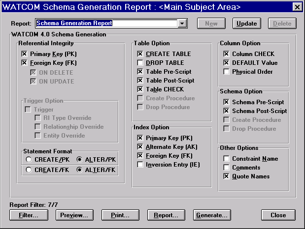 С помощью Erwin все это делаться на доступном для каждого уровне. Все что Вам необходимо сделать это установить соединение с сервером и выбрать соответствующую команду из меню. Как правило, генерация базы данных происходит безболезненно. Однако при возникновении ошибки пользователь имеет возможность вмешаться и внести необходимые коррективы в процесс. Кроме того, Вы можете выполнять генерацию скриптов для создания базы данных. На взгляд автора их внимательное изучение позволяют многому научиться.