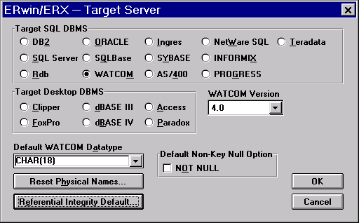 Во первых расширено количество поддерживаемых серверов баз данных (см. ниже). Это касается в первую очередь новых версий серверов лидеров рынка баз данных - ORACLE, INFORMIX, MS SQL Server, SYBASE. Erwin всегда отличался тем, что поддерживал все особенности каждого сервера. Если Вы используете Erwin, Вы не будете ограничены общим подмножеством команд всех серверов.