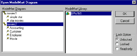 При открытии модели возникает диалог Open ModelMart Diagramm, в